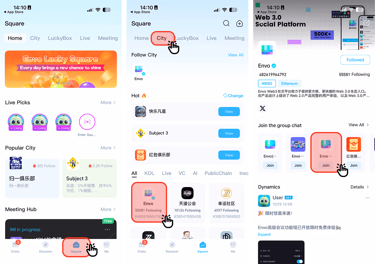Switch the tag at the top to “City.” Then find your “Envo” account and join.